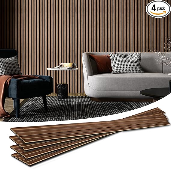 Art3d 4-Piece Wood Slat Acoustic Panels for Stylish Decor and Noise Reduction, 3D Textured Panel for Ceiling and Wall, Walnut